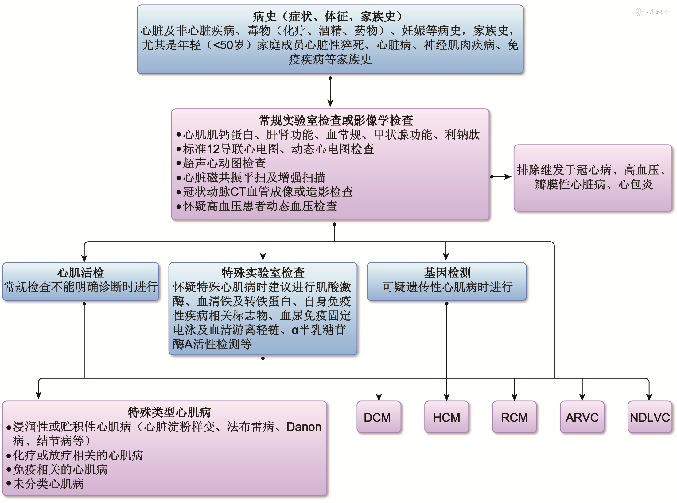 (注:ARVC为致心律失常性右心室心肌病;CT为计算机断层成像;DCM为扩张型心肌病;HCM为肥厚型心肌病;NDLVC为非扩张型左心室心肌病;RCM为限制型心肌病)