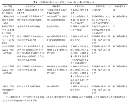《牛津循证医学中心证据分级2011版》证据等级评价表[9]