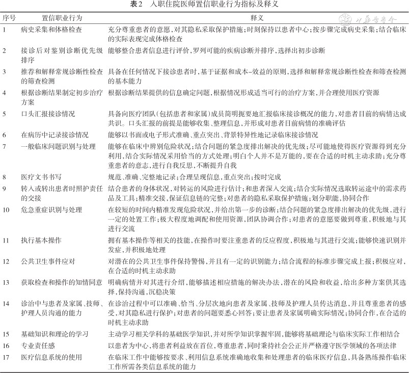探索构建入职住院医师置信职业行为指标体系,为针对性开展入职住院医师培训和能力评价提供支撑。