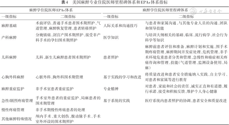 美国麻醉专业住院医师里程碑体系和EPAs体系指标