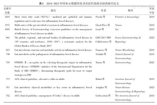 2018-2023年间WoS数据库收录炎症性肠病全球高被引论文