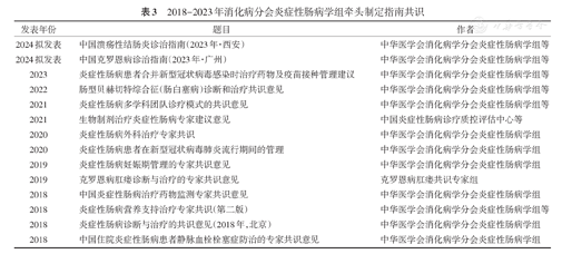 2018-2023年消化病分会炎症性肠病学组牵头制定指南共识