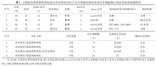 4例接受替雷利珠单抗联合泽布替尼治疗后完全缓解的难治弥漫大B细胞淋巴瘤患者临床病理特征
