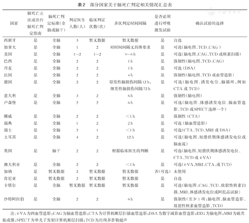 部分国家关于脑死亡判定相关情况汇总表