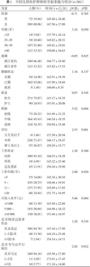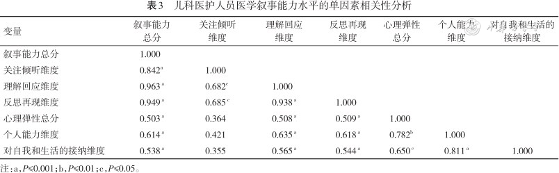 儿科医护人员医学叙事能力水平的单因素相关性分析