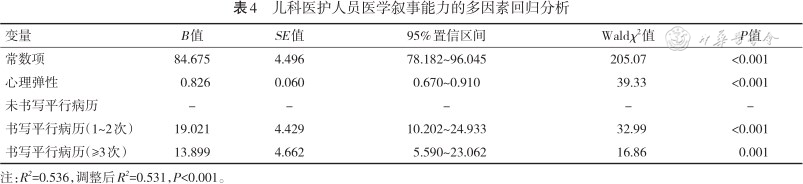 儿科医护人员医学叙事能力的多因素回归分析