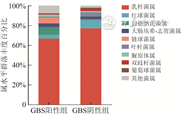 在属水平,GBS阳性组加德纳氏菌属、链球菌属、脲原体属相对丰度高于GBS阴性组,红球菌属、叶杆菌属和双歧杆菌属相对丰度低于GBS阴性组,差异有统计学意义(P<0.05)。见图1。