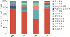 4组中,GN组菌群丰度最高,NN组最低。4组间两两比较发现,NG组红球菌属、叶杆菌属丰度最高,GN组加德纳氏菌属丰度最高,GG组大肠埃希-志贺菌属丰度最高,差异均有统计学意义(P<0.05)。见图3。