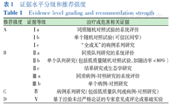 | 推荐强度 | 证据等级 | 治疗或危害相关证据 |