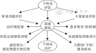 对患者的个体化评估是进行个体化治疗的前提,包括主观评估和客观评估。医师应提供监督下的个体化VRT治疗,并对患者进行充分教育,使其在家中能够规范进行家庭训练项目,新兴技术亦可为患者提供个体化的治疗。VRT的实施通常包括两种方式:第一种是医师监督+家庭定制方案[20],医师根据诊断和评估制定个体化的VRT方案,患者每1~2周前往医院,在治疗师的监督下进行2~3次的VRT训练,并定期进行康复评估调整训练方案。同时医师应为患者制定家庭VRT方案,患者在家中按要求进行同步训练。第二种方式是以家庭定制方案为主[21],根据对患者的诊断和评估制定个体化的家庭VRT方案,患者在家中进行康复训练,并定期前往医院进行康复评估或者治疗师进行定期家庭随访,以进一步调整训练方案(图2)。