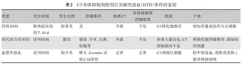 | 类型 | 发生时间 | 发生比例 | 伴随事件 | 游离C5 | 补体抑制剂药物浓度 | 机制 | 干预 |