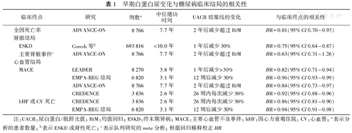 | 临床终点 | 研究 | 例数a | 中位随访时间 | UACR较基线的变化 | 与临床终点的相关性 |