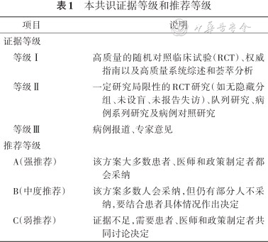 | B(中度推荐) | 该方案多数人会采纳,但仍有部分人不采纳,要结合患者具体情况作出决定 |