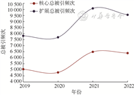 2. 总被引频次:核心总被引频次从2019年的5 055增至2022年的6 390,扩展总被引频次从2019年的7 817增至2022年的9 550。见图1。