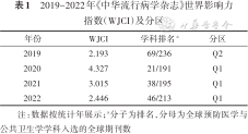 2019-2022年《中华流行病学杂志》世界影响力指数(WJCI)及分区