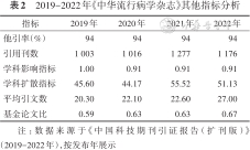 为评估《中华流行病学杂志》近年来的学术质量及影响力,对2019-2022年《中华流行病学杂志》的主要引证指标进行分析。