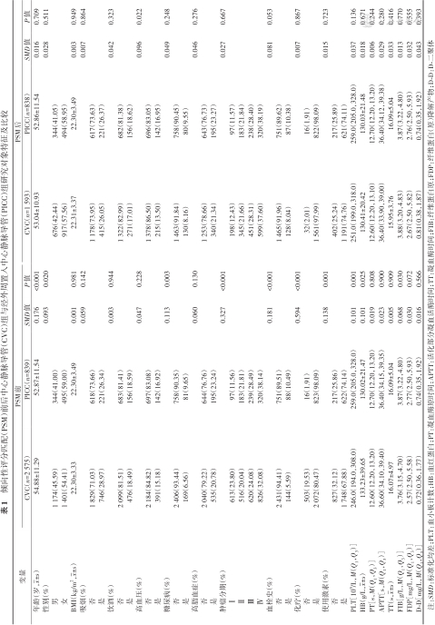 倾向性评分匹配(PSM)前后中心静脉导管(CVC)组与经外周置入中心静脉导管(PICC)组研究对象特征及比较