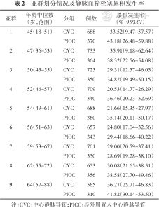 亚群划分情况及静脉血栓栓塞累积发生率