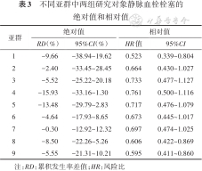 不同亚群中两组研究对象静脉血栓栓塞的绝对值和相对值