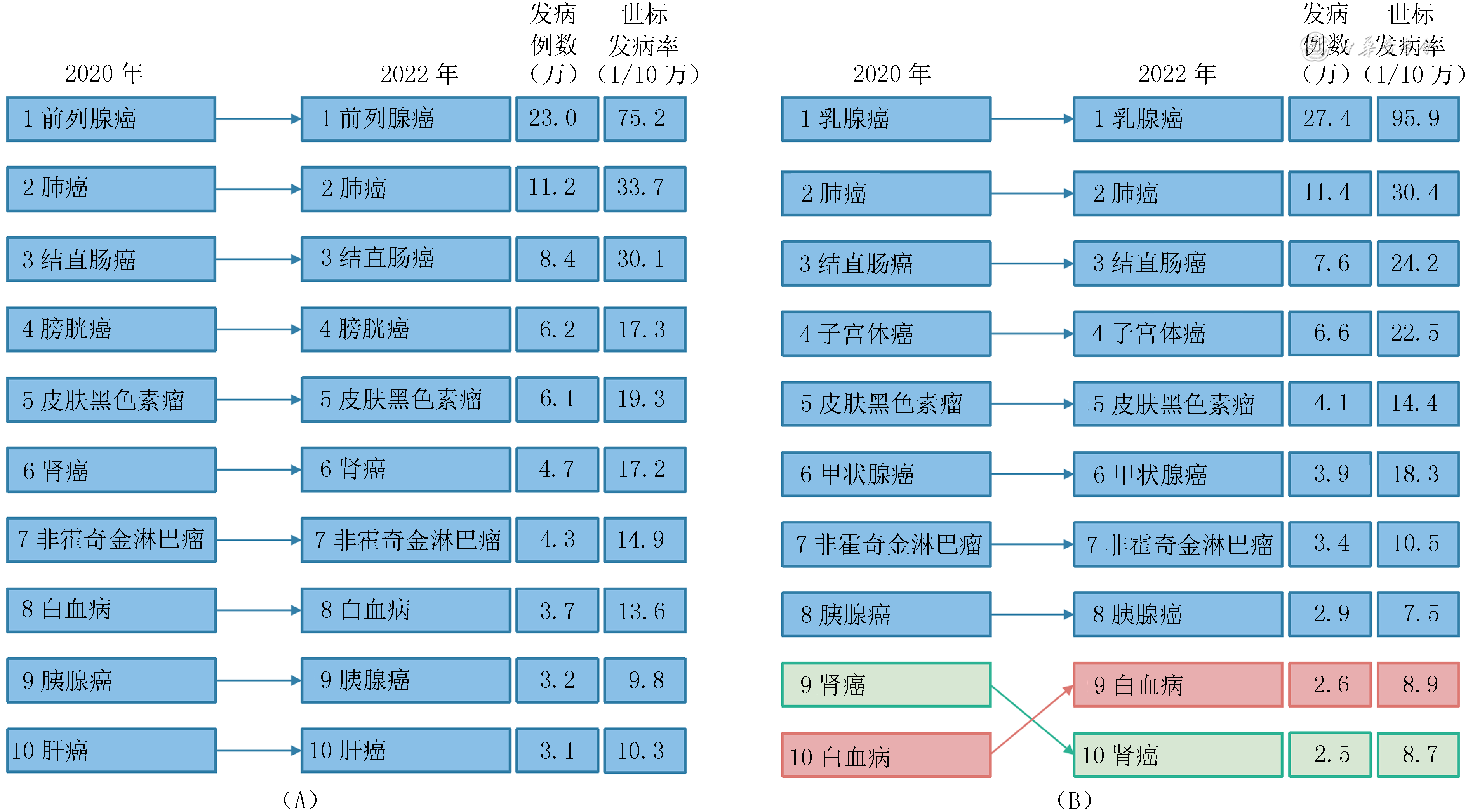 注:世标发病率为Segi's世界人口年龄标准化发病率;数据来源为GLOBOCAN 2020和2022