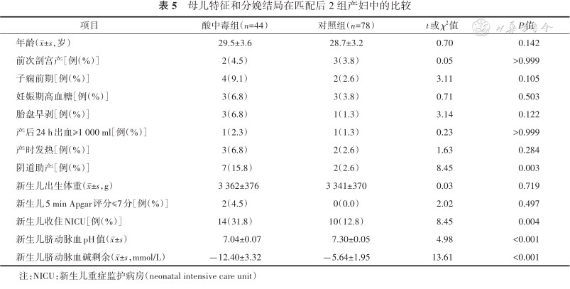 母儿特征和分娩结局在匹配后2组产妇中的比较