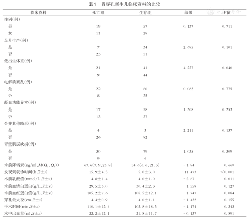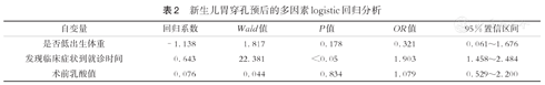 新生儿胃穿孔预后的多因素logistic回归分析