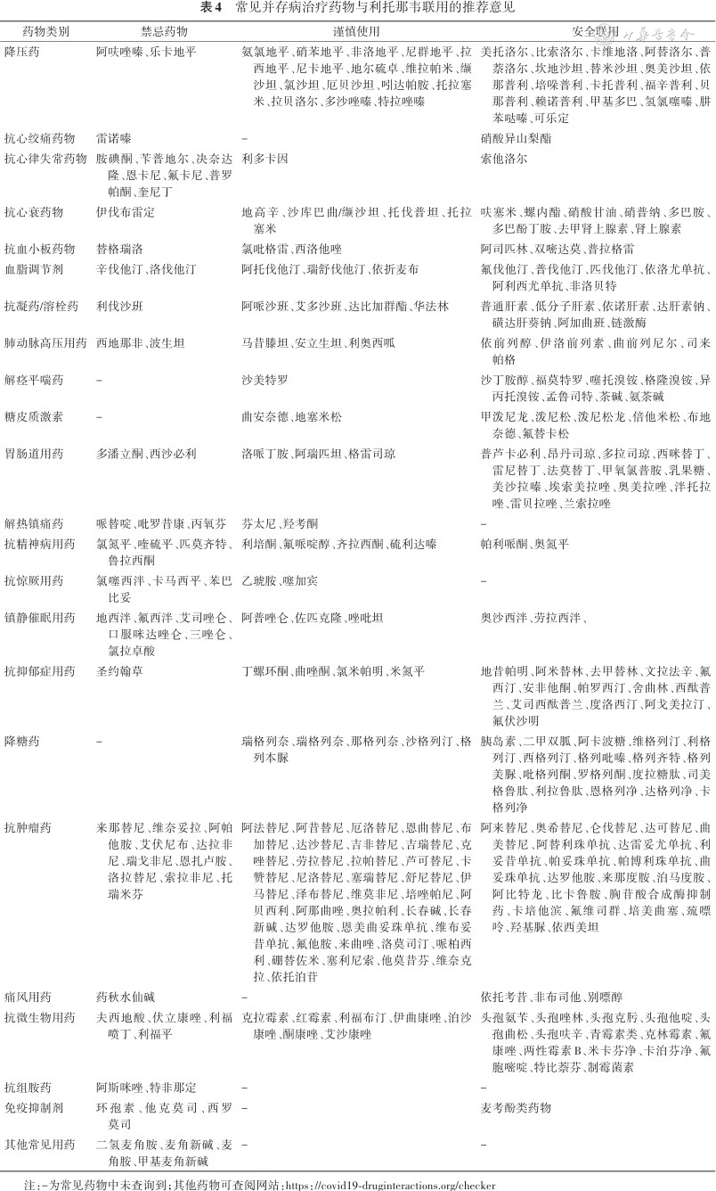 注:-为常见药物中未查询到;其他药物可查阅网站:https://covid19-druginteractions.org/checker