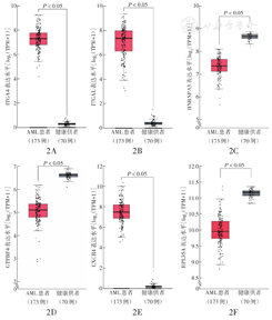 注:GEPIA为基因表达谱交互分析;AML为急性髓系白血病;TPM为每千个碱基的转录每百万映射读取的转录本