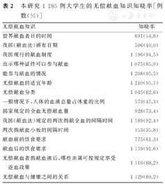 调查成都市高校大学生群体对无偿献血的认知水平。