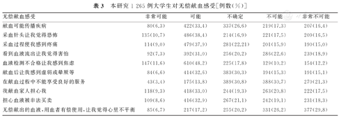 本研究1 265例大学生对无偿献血感受[例数(%)]