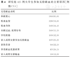 研究组425例大学生参加无偿献血的主要原因[例数(%)]