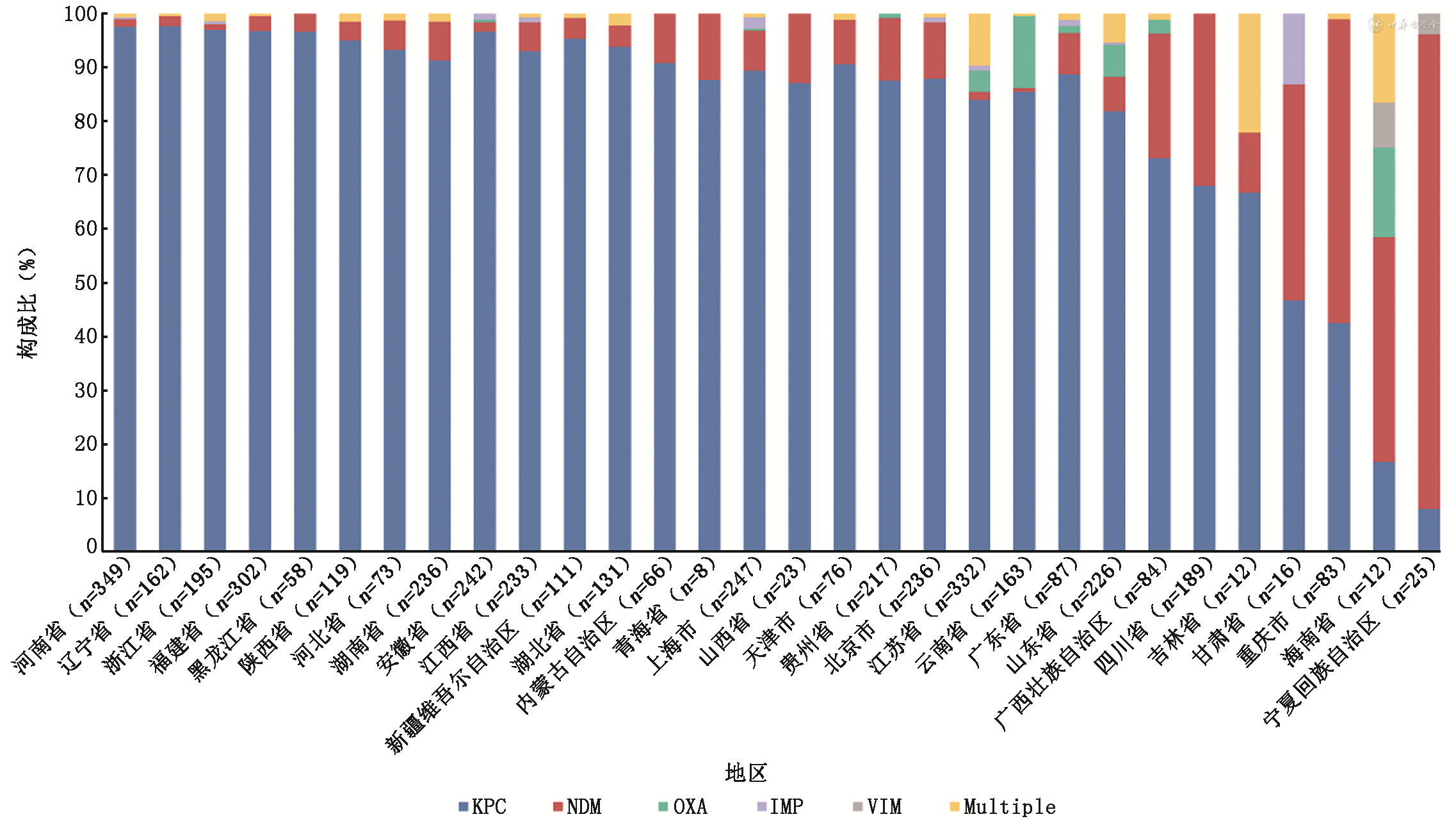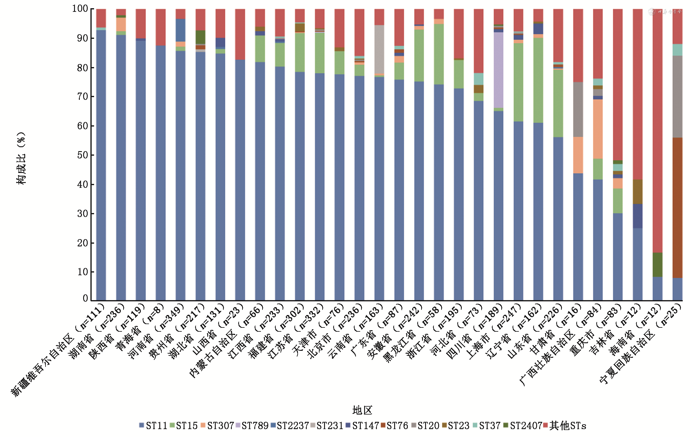 不同省市之间分离CRKP的耐药机制和多位点序列分型有所差异。
