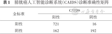 膀胱癌人工智能诊断系统(CAIDS)诊断准确性矩阵