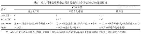 意大利淋巴瘤基金会提出的老年综合评估(GA)的分组标准