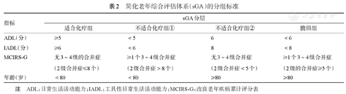 | 适合化疗组 | 不适合化疗组① | 不适合化疗组② | 脆弱组 | |