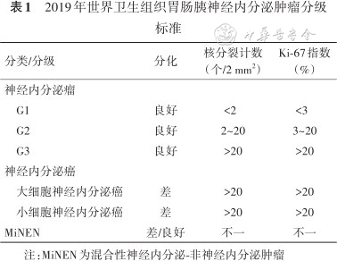 2019年世界卫生组织胃肠胰神经内分泌肿瘤分级标准