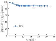 射波刀治疗后3个月内死亡2例(3.4%)。其余56例患者在射波刀治疗后3个月时通过头部增强MRI评价射波刀治疗效果显示,CR 3例(5.4%),PR 36例(64.3%),SD 13例(23.2%),PD 4例(7.1%)。