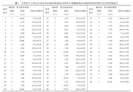 行射波刀立体定向放疗治疗脑转移瘤的58例非小细胞肺癌患者脑转移瘤的情况及分割剂量模式