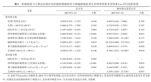 影响射波刀立体定向放疗治疗脑转移瘤的非小细胞肺癌患者生存的单因素及多因素Cox回归分析结果