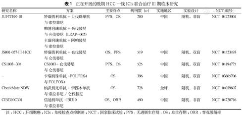 注:HCC:肝细胞癌;ICIs:免疫检查点抑制剂;NCT:国家临床试验;PFS:无进展生存期;OS:总生存期;ORR:客观缓解率