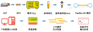 应用新一代长读长测序技术精准确定复制缺陷型痘苗病毒天坛株(non-replicating Tiantan strain of vaccinia virus,NTV)全基因组序列及其开放阅读框(ORFs)组成。