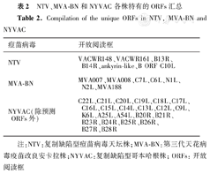 NTV、MVA-BN和NYVAC各株特有的ORFs汇总