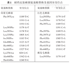 耐药皮肤癣菌氨基酸替换及基因突变位点