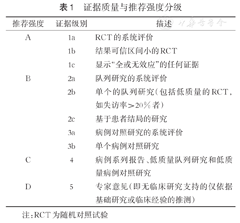 本指南使用《牛津大学循证医学中心分级2009版》对推荐意见的支持证据进行评级(https://www. cebm. ox. ac. uk/resources/levels-of-evidence/oxford-centre-for-evidence-based-medicine-levels-of-evidence-march-2009)(表1)。