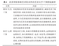 | 教育/行为干预 | 住院期间对受者及家属进行健康教育,确保受者了解用药类型、时机及用药方法,并强调不依从相关风险;门诊随访时为每次药物剂量或频率的变化提供书面说明,并为受者提供依从性提醒,进行健康教育;定期或持续为受者及家属提供健康咨询及健康教育;教育受者完善自我管理,记录就诊情况及依从性情况加强受者家庭教育及管理 |