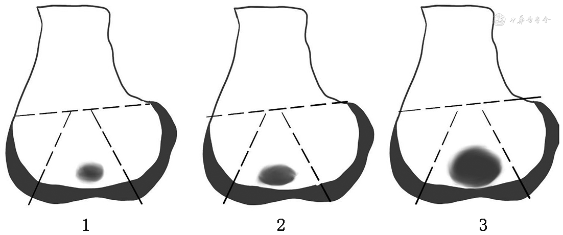 近年来MRI的快速发展为EKOA的精准定义创造了条件,相比于传统的X线检查,MRI能进一步探明软骨、半月板、骨髓、髌下脂肪垫、滑膜等组织结构信号改变。在基于MRI的评分中,WORMS评分是较常见的评分之一[14, 15],该评分包含了软骨、软骨下骨骨髓及半月板等评分。考虑到半月板损伤可作为一个独立的疾病存在,而软骨和骨髓病变是KOA的重要征象,因此将软骨损伤和软骨下骨骨髓水肿作为定义EKOA的元素之一[16]。WORMS评分详细描述了软骨损伤和软骨下骨骨髓损伤的评分标准,并且具有较好的可靠性[17, 18]。WORMS评分将膝关节分为15个区域,其主要根据软骨形态进行软骨损伤情况的评分(图1),骨髓范围的大小进行软骨下骨骨髓损伤情况的评分(图2)。同时,笔者结合目前文献意见,综合目前的研究意见,本指南将MRI上显示的软骨损伤退变、骨髓水肿等作为EKOA的定义之一,并用WORMS评分对软骨形态、骨髓水肿评分。