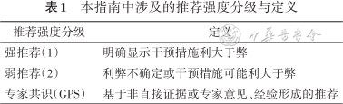 | 专家共识(GPS) | 基于非直接证据或专家意见、经验形成的推荐 |