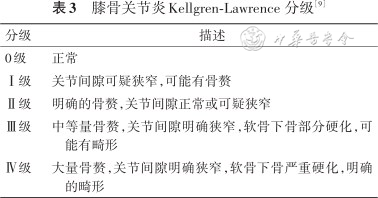 膝骨关节炎Kellgren-Lawrence 分级[9]
