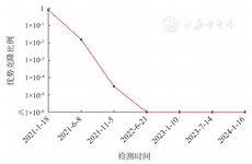 (6)如患者有2次及以上MRD数据,可根据MRD水平和检测时间点,绘制相应的检测点曲线,以动态监测MRD水平的变化(如图3)。