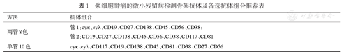 浆细胞肿瘤的微小残留病检测骨架抗体及备选抗体组合推荐表